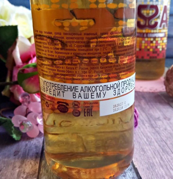 Почему-то я не могу назвать пиво Essa «женским». Степень в нем намного выше, чем в обычном мужском пенистом напитке. Непонятно, чем руководствовались технологи при разработке такого рецепта. Ведь обычное пиво содержит от 3 до 6% алкоголя по объему, а у него даже больше (6,2%). Как-то многовато для слабого пола. Но, судя по рекламе, этот товар рассчитан на вечернее время дня. Возможно, это причина увеличения крепости. К тому же крепкое пиво всегда будет лучше для женщины, чем слабая водка. Легкий аромат ананаса с ноткой грейпфрута способен немного смягчить горечь алкоголя и придать напитку романтический характер. На самом деле это больше похоже на крепленый коктейль. Но не все женщины любят эти смеси. Некоторые думают, что вкус напитка должен прямо совпадать с его названием. А если на этикетке написано «пиво», то содержимое бутылки как-то заметно. Но есть и потребители, которым нравится необычный купаж. Именно на них и направлены усилия технологов компании.