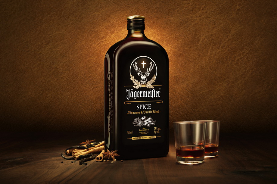 Напиток разливают строго в бутылки с тонированным стеклом. При этом тара марки Jagermeister Spice имеет светло-коричневый оттенок. На этикетке всегда изображен олень с крестом между рогами, а крышка изделия сделана из металла.