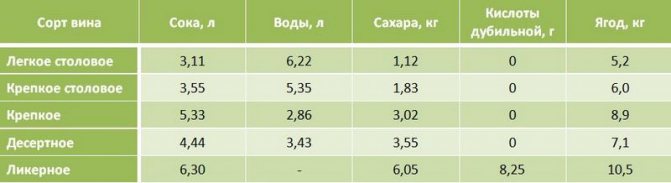 Ингредиенты на 25 литров вина: