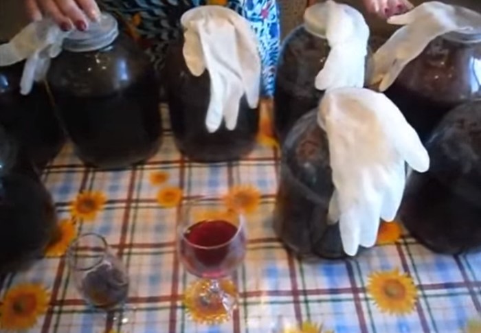 4. Через месяц и более (до 2 месяцев) весь сахар превратится в спирт. Это станет ясно по перчаткам, они отвалятся. Молодое вино готово. Его нужно аккуратно удалить с осадка.