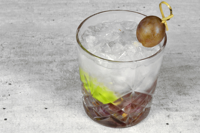 - Размять 2–3 грозди винограда и переложить в стакан.
