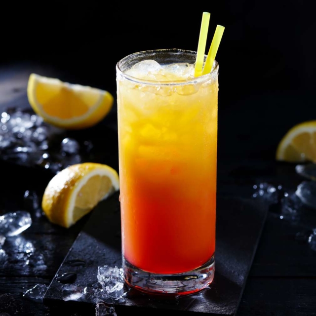 Коктейль для лонг-дринка привлекает внимание с первого взгляда благодаря красивому цветовому сочетанию, нанесенному в бокал.