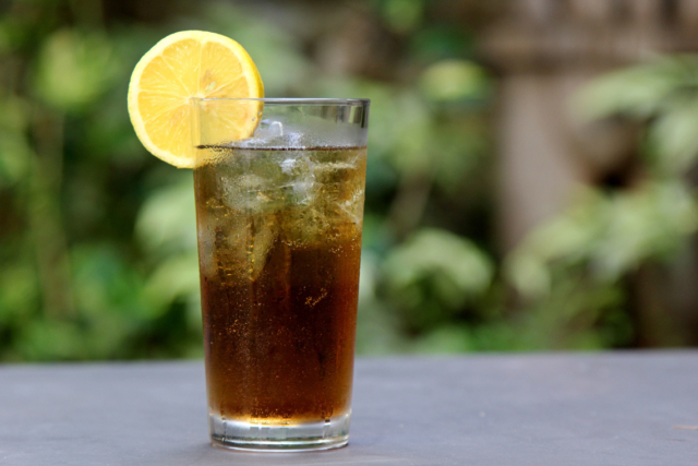 - Теперь влейте 50 мл «Молинари», 150 мл колы и в конце 20 мл свежего лимона.