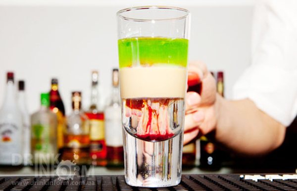 А для того, чтобы слой абсента лежал сверху аккуратно, стоит воспользоваться ложкой, что способствует успешному завершению процесса. Перед тем, как выпить этот коктейль, можно поджечь.