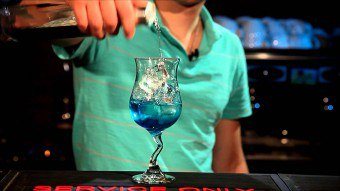 - Затем аккуратно и постепенно капают ликер Blue Curasao 3 мл и ликер Baileys 3 мл, благодаря чему получаются «легкие облака.