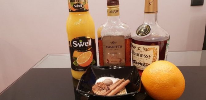 К нему добавить 50 г амаретто и чайную ложку лимонного сока. Все перемешивают шейкером. Наконец, добавьте сок дольки апельсина.