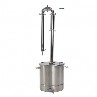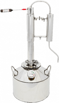 Данный аппарат предназначается для домашнего применения. Объем перегонного куба составляет 20 литров. Проточный охладитель расположен вертикально. В комплекте идет сухопарник, который очистит этиловые пары от сивушных примесей и биметаллический термометр, позволяющий контролировать температурный режим. Особенностью дистилляторов этой серии является съемная крышка, позволяющая легко мыть перегонный куб изнутри.