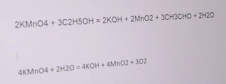 Бурые хлопья, которые выпадают в осадок, являются не сивушными маслами, а непосредственно двуокись марганца. Получается, что мы расщепляем сам спирт, а не какие-то вредные примеси. Ввиду этого хлопья можно назвать обыкновенным спиртом, вступившим в реакцию с марганцем.