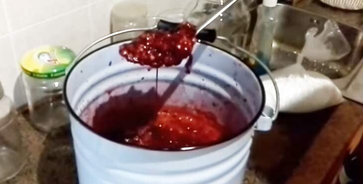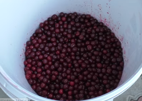 в ведре замешивают 1,5 кг вишни.