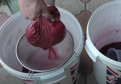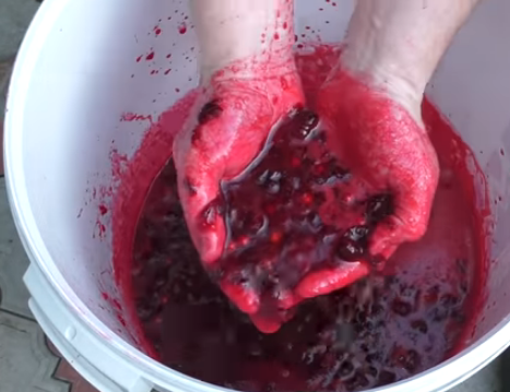 Чтобы вино не закисло и сверху не появилась плесень, необходимо ежедневно перемешивать содержимое ведра несколько раз в день (3-4 раза.