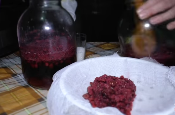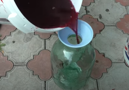- Молодое вино процеживаем через марлю. Разливаем напиток по бутылкам или банкам и отправляем на хранение в темное прохладное место.