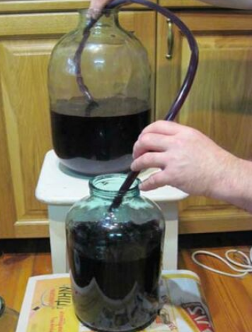 - К этому времени напиток стал светлее и на дне образовался осадок, который необходимо слить в чистую банку с помощью силиконового шланга. Поместите его в вазу на 2 см выше от осадка и перелейте вино в чистую емкость.