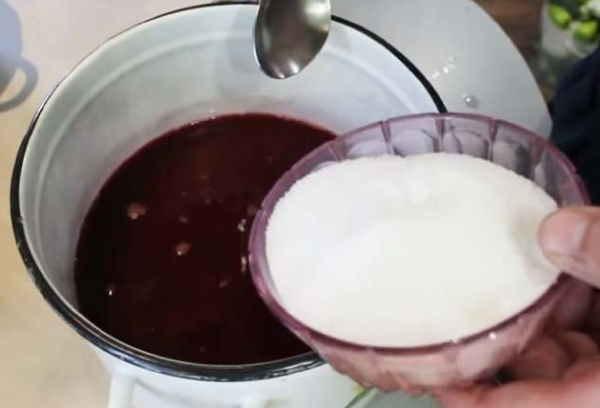 Затем отжать или отжать сок и добавить воду, сок смородины и сахар.